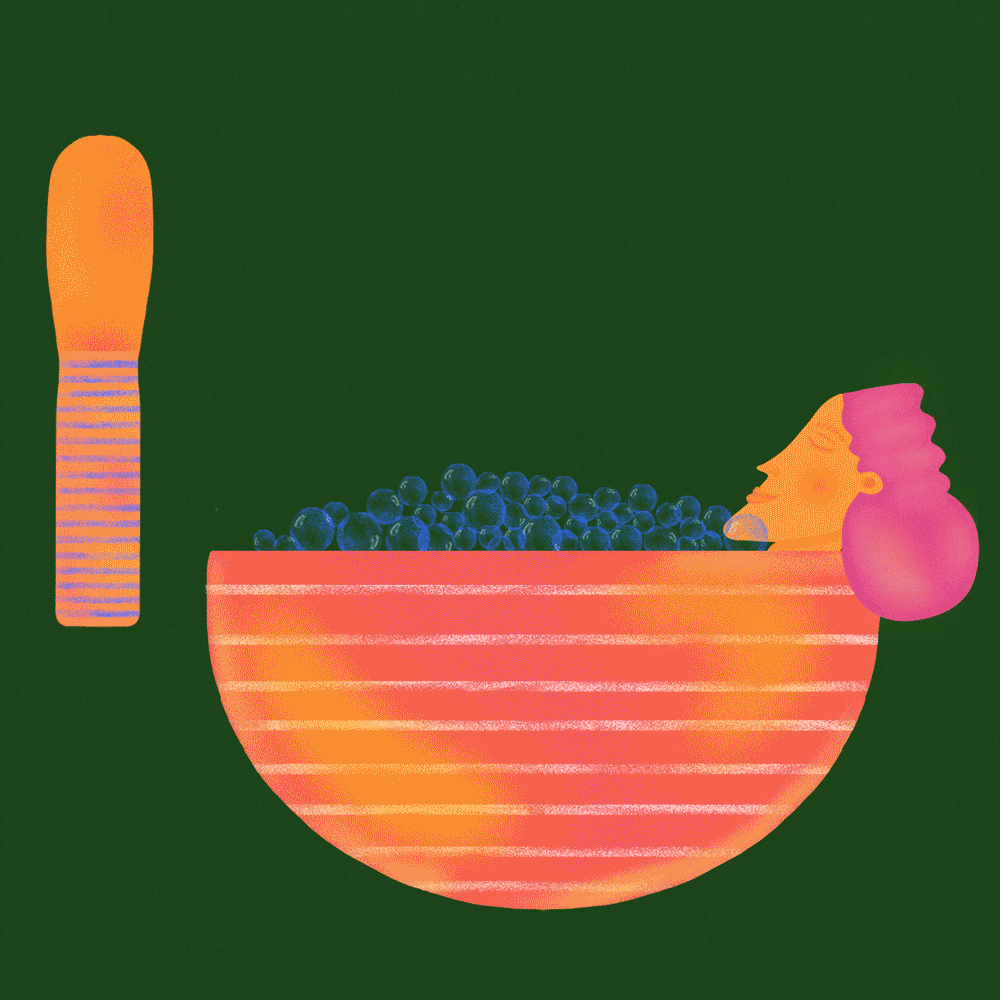Ellie says: “I have visualised the session with an illustration of some of the instruments that are used in sound healing. The last half an hour of the session was a lovely sound bath, I have made a gif showing someone having a relaxing bubble bath in a singing bowl to depict this.”