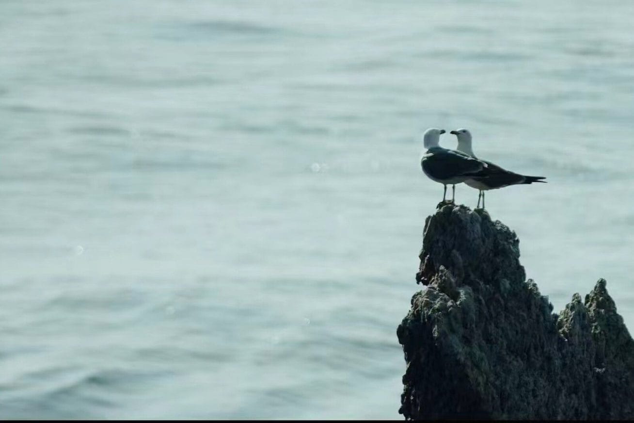 On an island not far from the mainland, a young father seagull is anxiously guarding newborn gulls and awaiting the return of their mother.