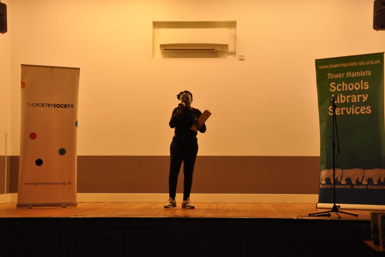Organised by Tower Hamlets Schools Library Service, students from secondary schools in Tower Hamlets are getting together to compete to deliver the punchy poetry they have written in workshops led by poets from the Poetry Society.