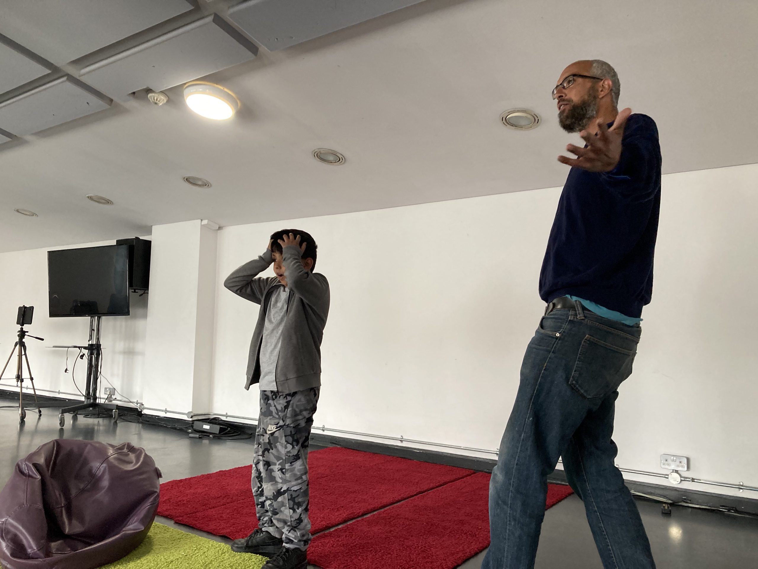 More unusual art forms such as light tableaux (where we experimented with light and shadow to create puppets and comedic characters), and foley techniques (as often used in comedy, thriller and horror genres) allowed the children to explore lesser-known practices from film and theatre.