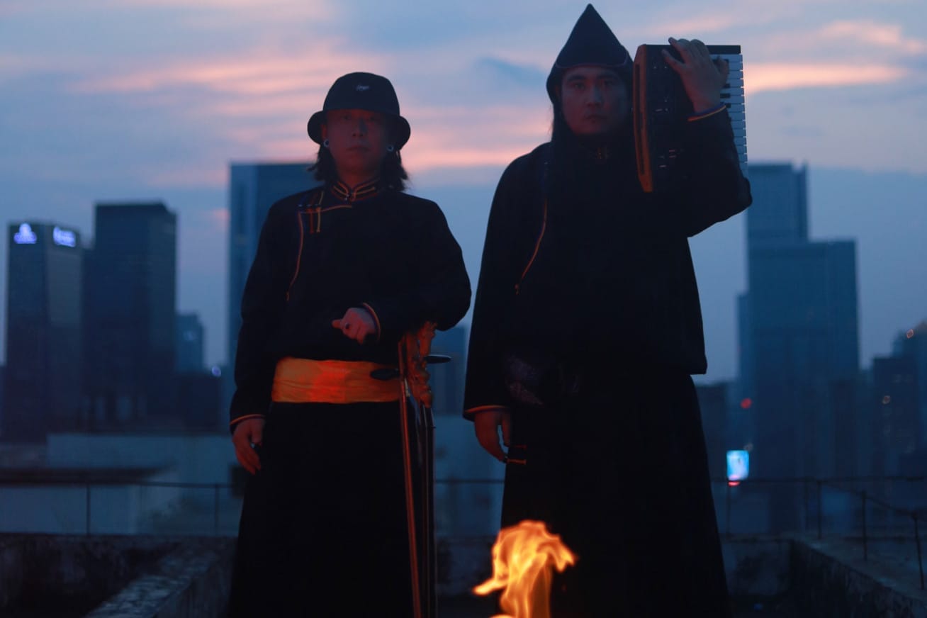 Rooted in Mongolian traditions and musical heritage, they combine the Khoomei throat singing technique, instruments such as the morin khuur (horse-head fiddle), the Tuvan doshpuluur lute, bass drums and guitars, with influences from dub, broken beats, progressive, ambient, trance and electronic dance music.