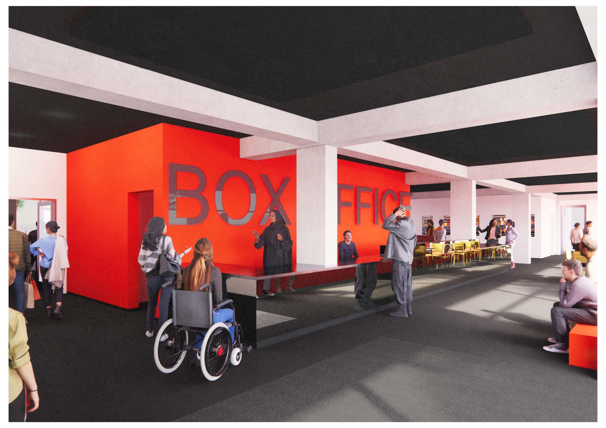 - This is the view as you enter from Bethnal Green Road. We want the entrance to feel spacious and welcoming, with a bigger box office, which will be accessible for team members and visitors.