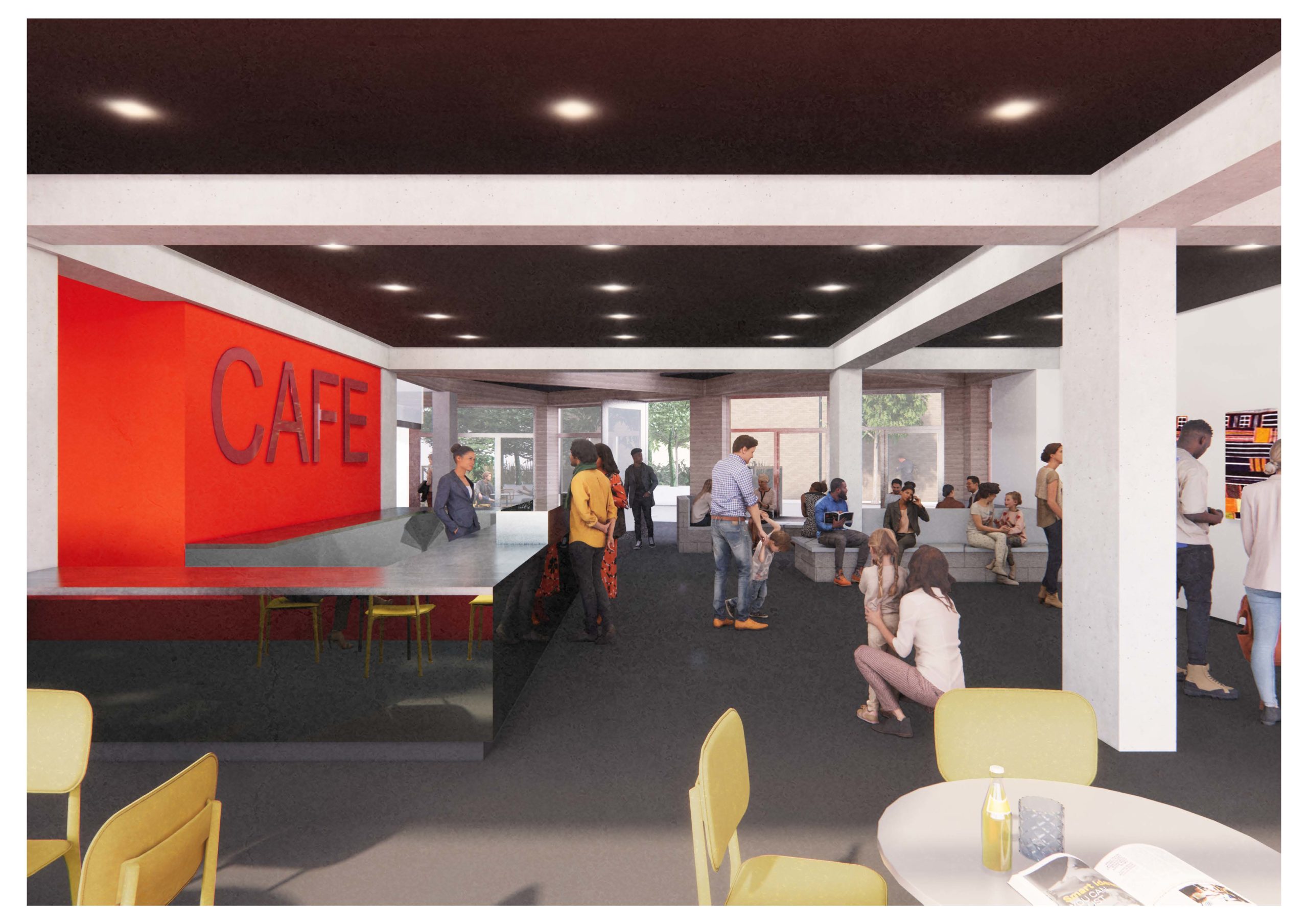 - This is the view of the new café and visual arts and community space. You can see straight out onto Redchurch Street. We are still exploring what menu we might offer but we know we want it to be affordable and family-friendly. We want this space to be a creative hub, hosting our exhibitions, as well as local community meet-ups and occasional events.