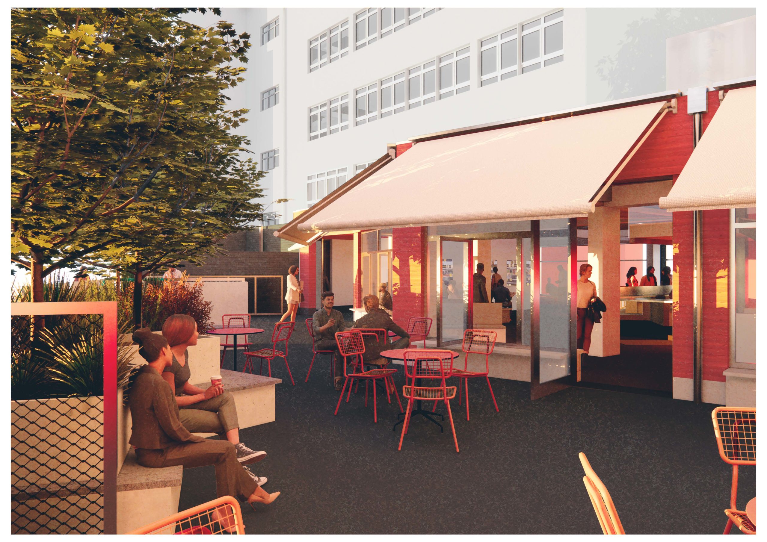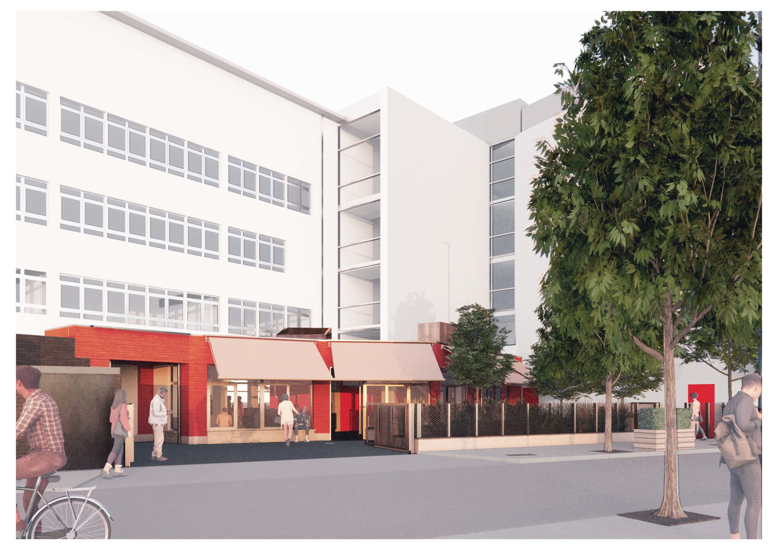 - This is a view of our planned new entrance on Redchurch Street. Features include: a new welcome and entrance in and view through to our visual arts and community space and café; a green roof on the extension; a growing hedge and fence replacing the wall; gates that can be opened whilst we are open to the public but that can be closed again in the evenings for security; space for vans and cars for our deliveries (which we will limit to mornings only)